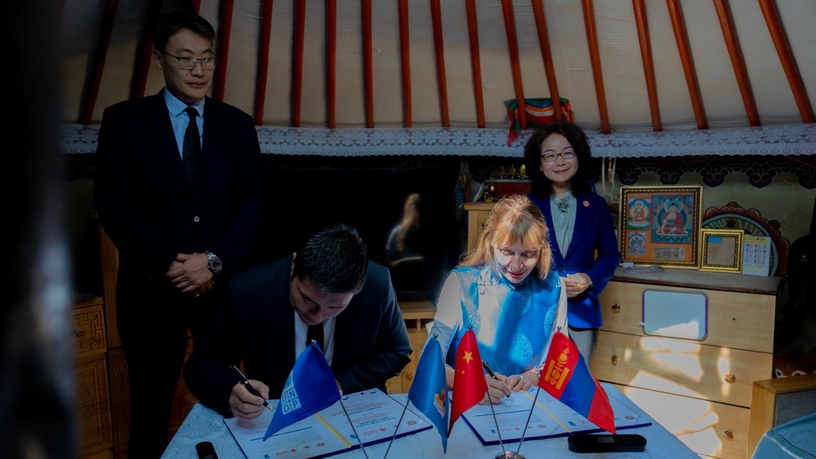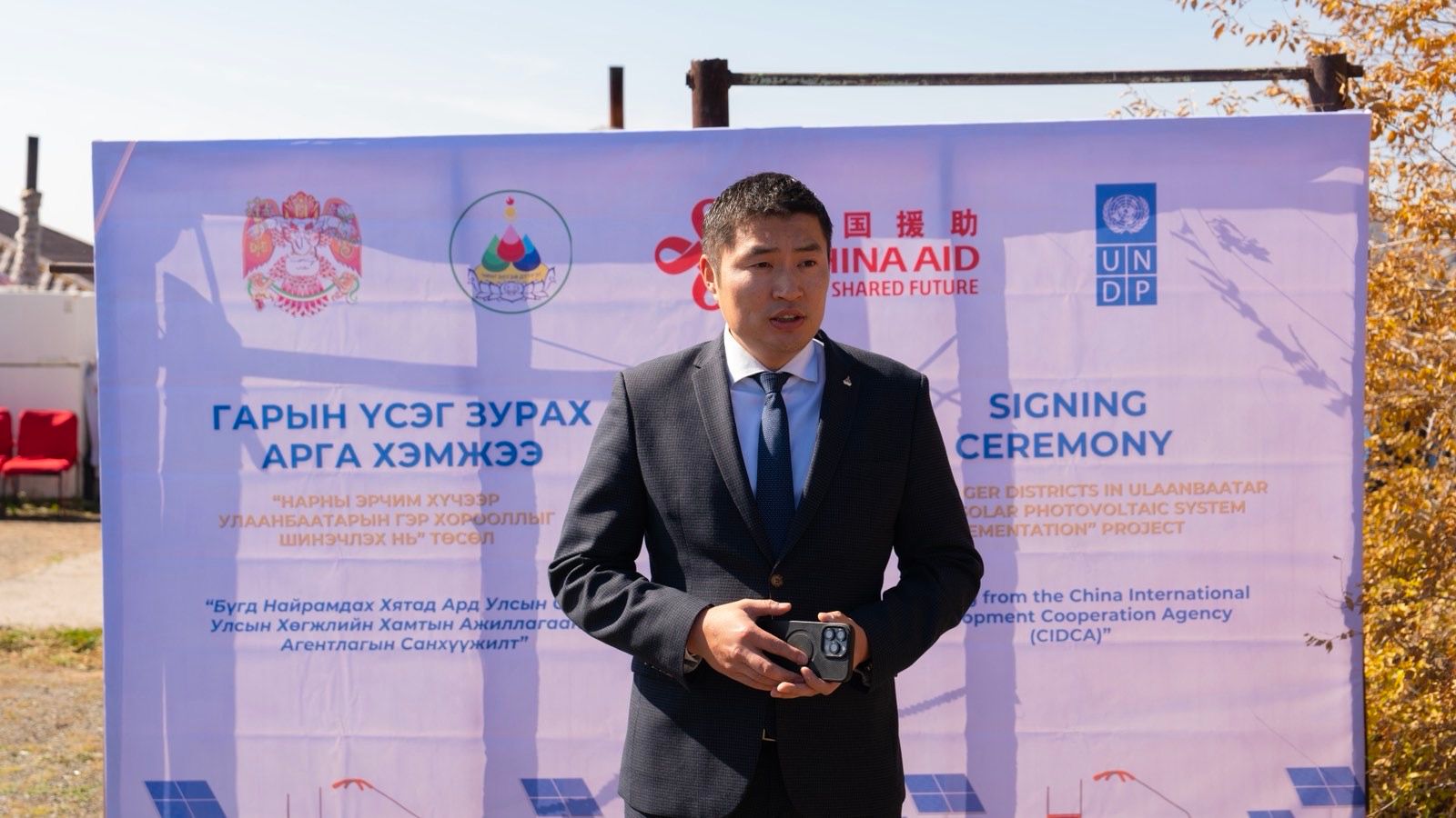 Өнөөдөр “Нарны Эрчим Хүчээр Улаанбаатар хотын Гэр Хорооллыг Шинэчлэх нь” төсөлд гарын үсэг зурах ёслолд дүүргийн Засаг дарга Н.Мандуул, Бүгд Найрамдах Хятад Ард Улсаас Монгол Улсад суугаа Онц бөгөөд Бүрэн эрхт Элчин сайд Шэнь Миньжуан, Монгол дахь НҮБ-ын Хөгжлийн хөтөлбөрийн суурин төлөөлөгч Матилда Димовска, Нийслэлийн Засаг даргын орлогч А.Амартүвшин нар оролцлоо.